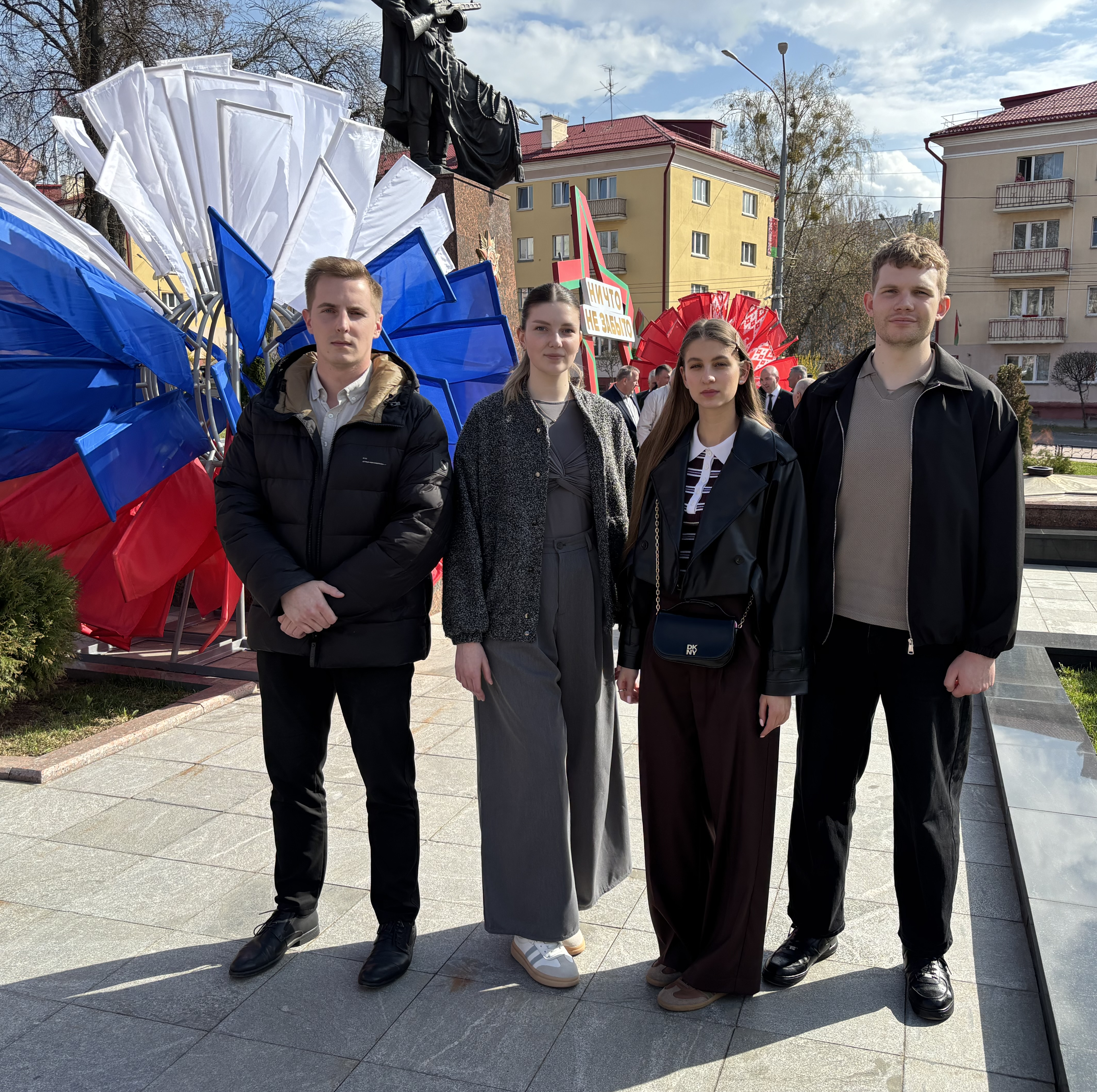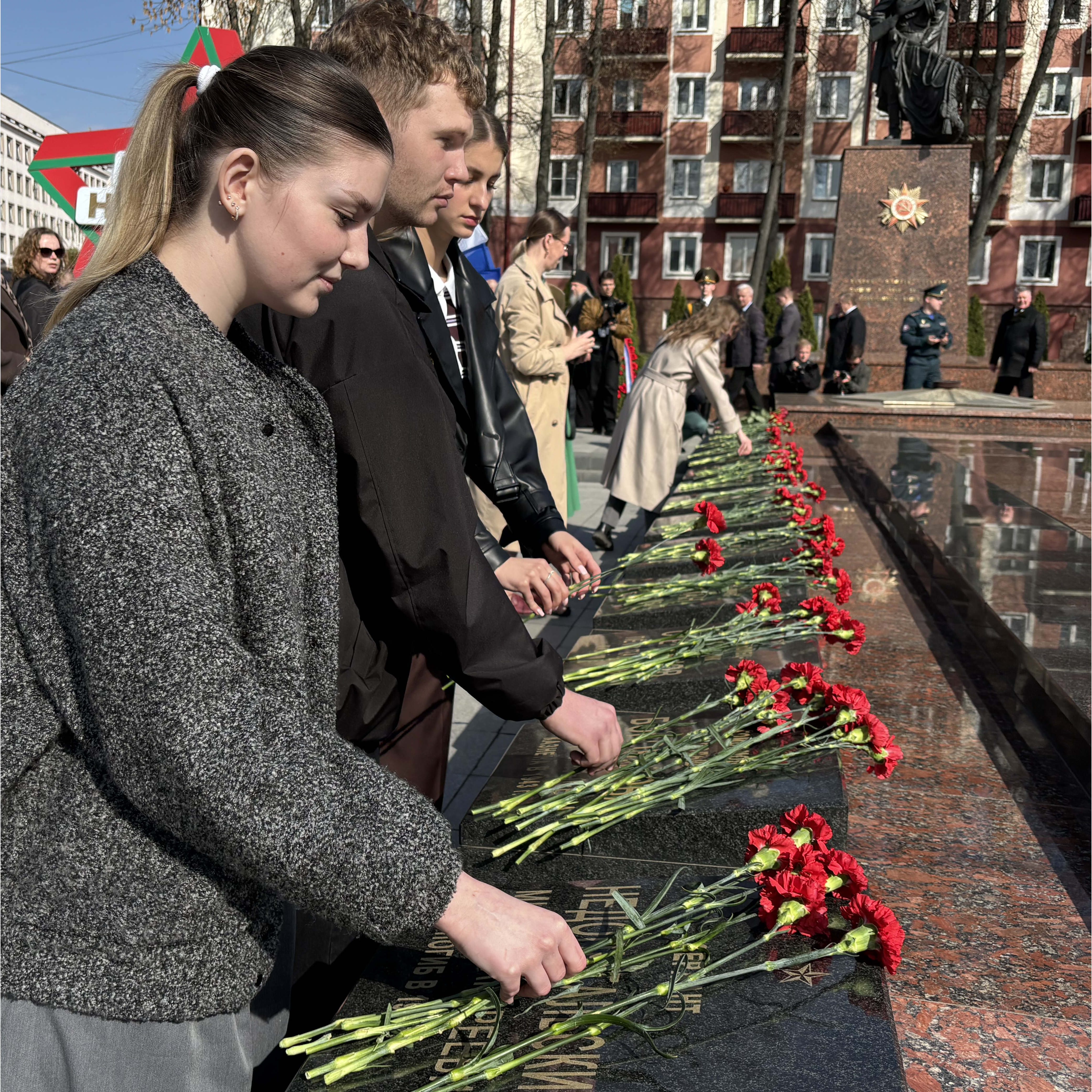 В этот день Молодежь Главного управления приняла участие в торжественном митинге, посвященном Дню единения народов Беларуси и России, который проходил в знаковом месте для всех гомельчан – у Вечного огня на площади Труда.