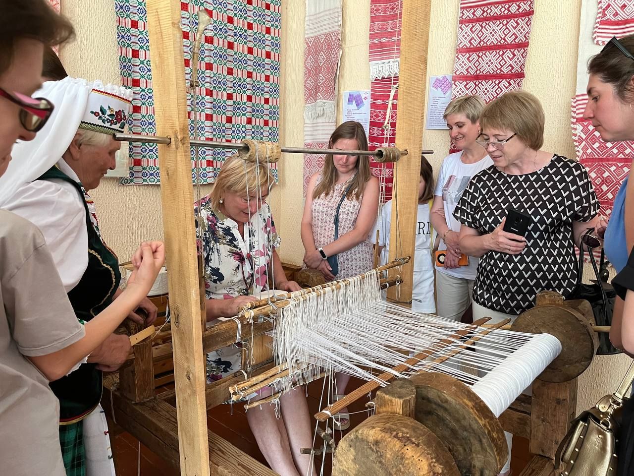 Следующим пунктом экскурсии стал Бабичский центр ткачества (Чечерский район, д. Бабичи), где работники управления ознакомились с ремеслом бабушек и прабабушек – ткачеством.
