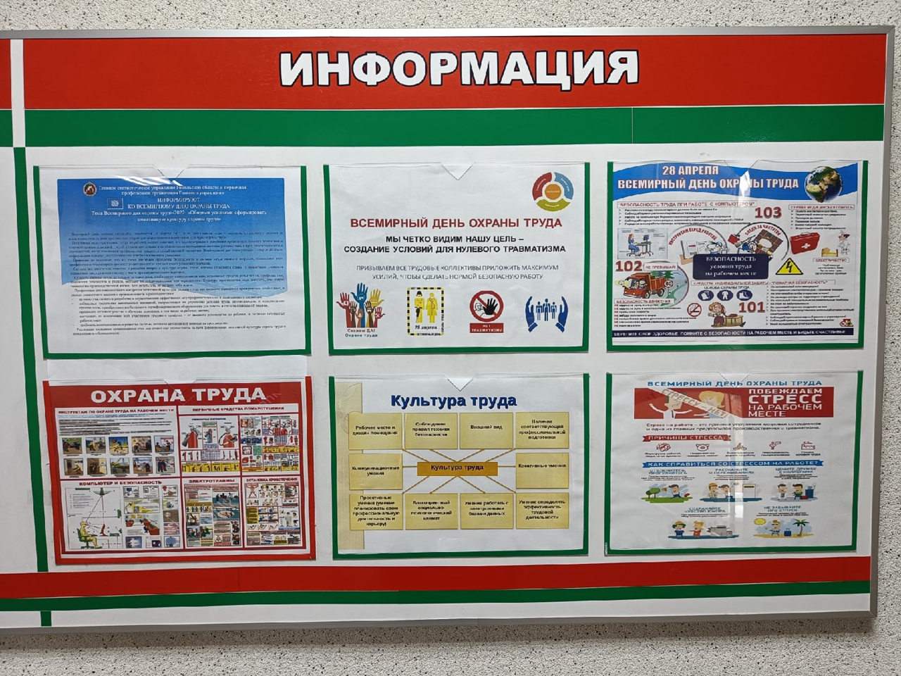 Кроме того на стендах Главного управления и в отделах статистики в районах размещены информационные материалы, посвященные теме Всемирного дня охраны труда.